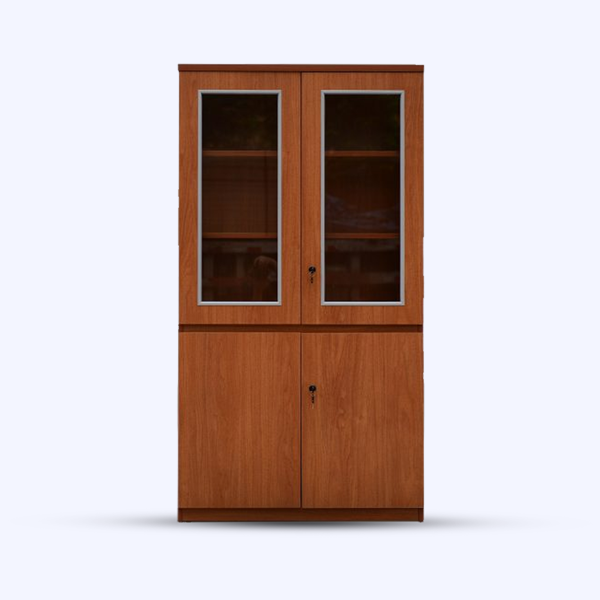 150 000 CFA HTAjouter au panierArmoire de bureau en bois avec portes vitrées et compartiment inférieur verrouillable, idéale pour le rangement et l’exposition de dossiers et objets professionnels au Cameroun.