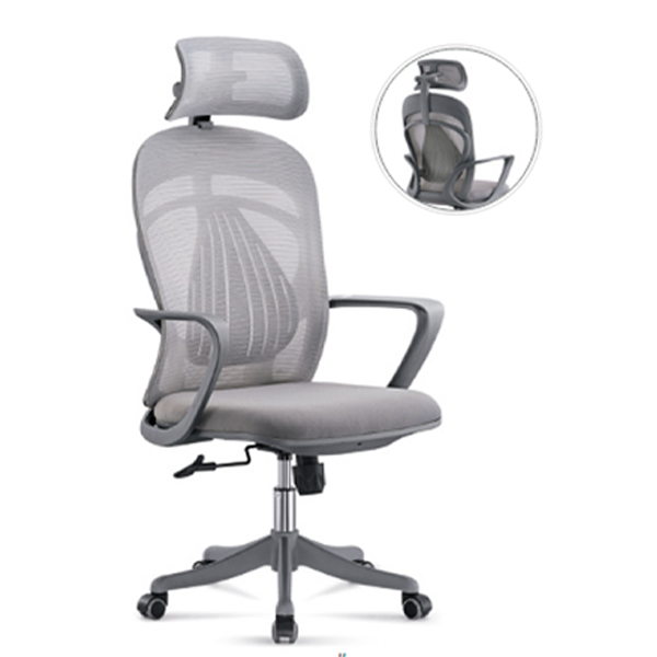 Fauteuil de bureau ergonomique en maille grise avec appui-tête