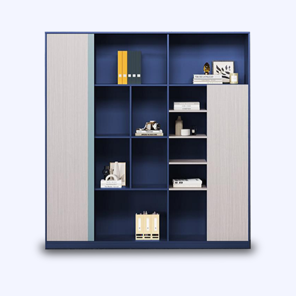 Elle dispose de plusieurs compartiments ouverts pour exposer dossiers, classeurs, livres et objets décoratifs, ainsi que de zones fermées pour ranger les documents confidentiels et les fournitures.