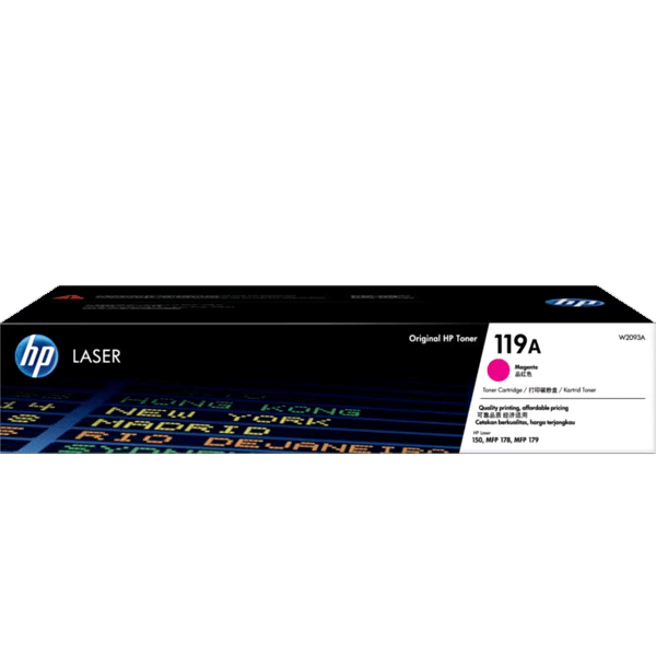Le toner HP 119A Magenta (W2093A) est un consommable laser couleur original HP, conçu pour produire des impressions nettes et fidèles, idéales pour les documents professionnels, graphiques et supports marketing.